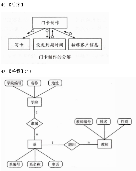 43.在学校管理信息系统中,一个学院有多个系,一个系只能属于一个学院;一个系聘用多名教师,一名教师仅能在一个系工作。其中:学院有学院编号、名称和地址属性;系有系编号、系名称和电话属性;教师有教师编号、姓名和性别属性。